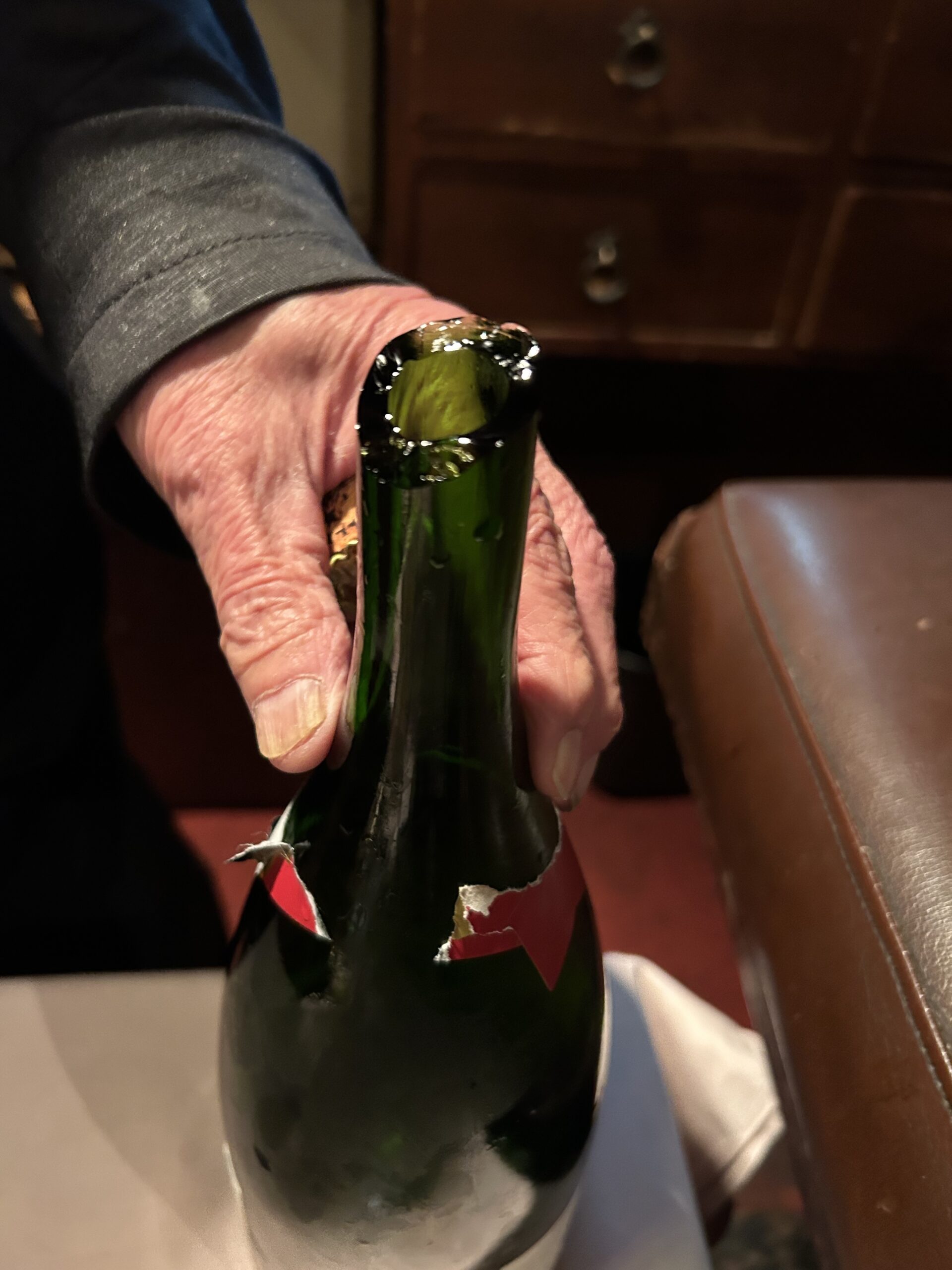 彼らは馬に乗ったままシャンパンを開ける必要があり、サーベル(軍刀)でボトルの口を斬り落とす方法を用いました。