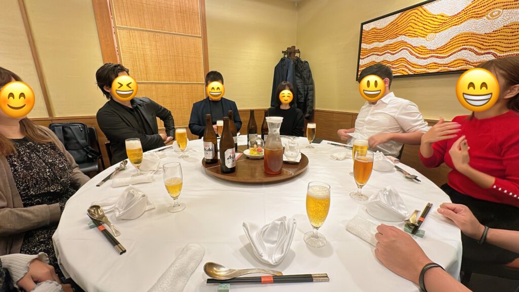 テーブルには色とりどりの中華料理が並び、前菜からメイン、デザートまでどれも絶品!円卓を囲みながら会話も弾みました。