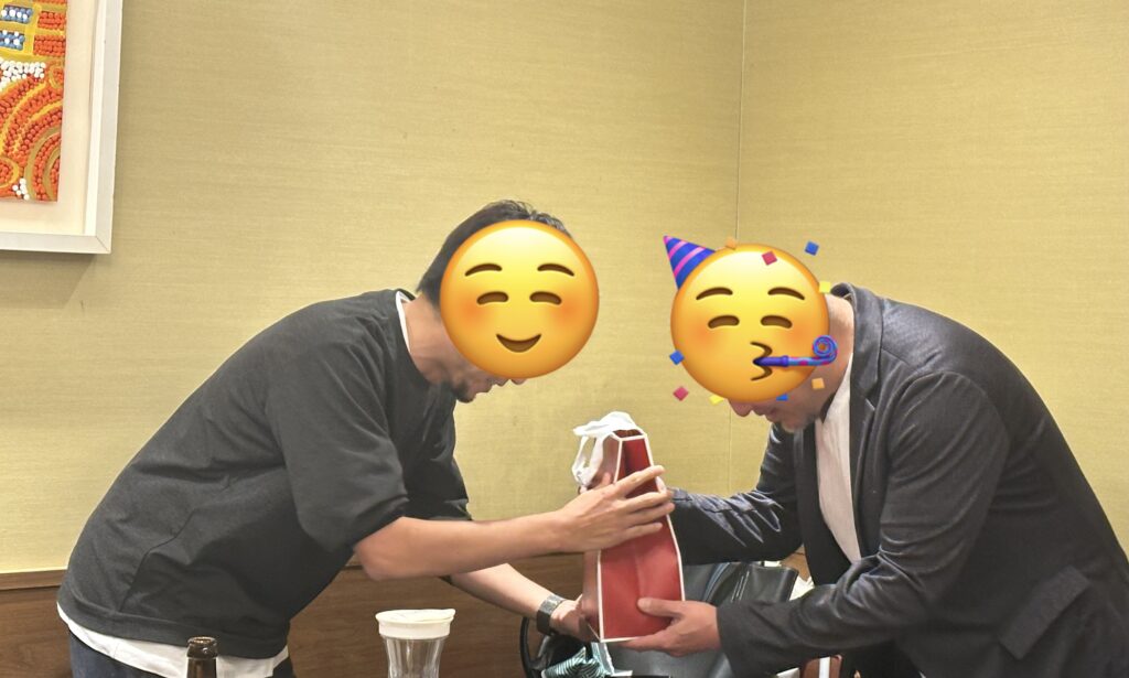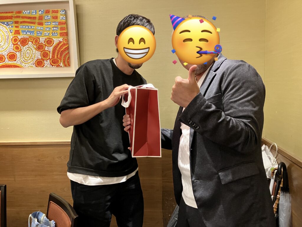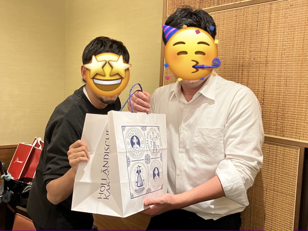 誕生月のスタッフ写真を見返すと、なぜかどのカットにも統括部長の姿が…今回もその存在感で会を盛り上げてくれました(笑)。