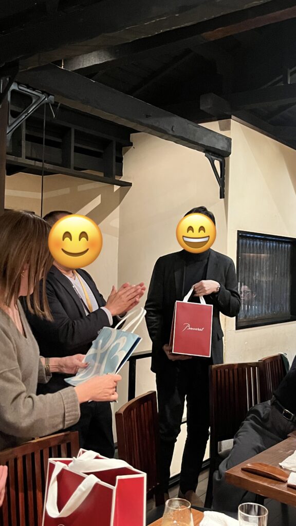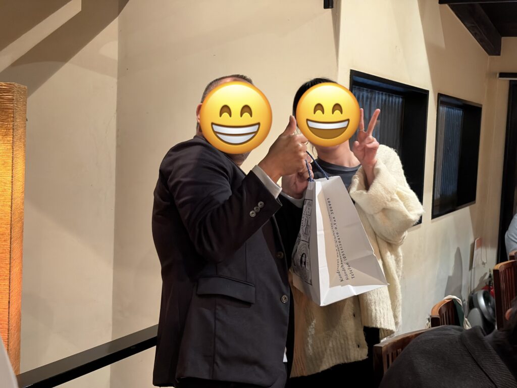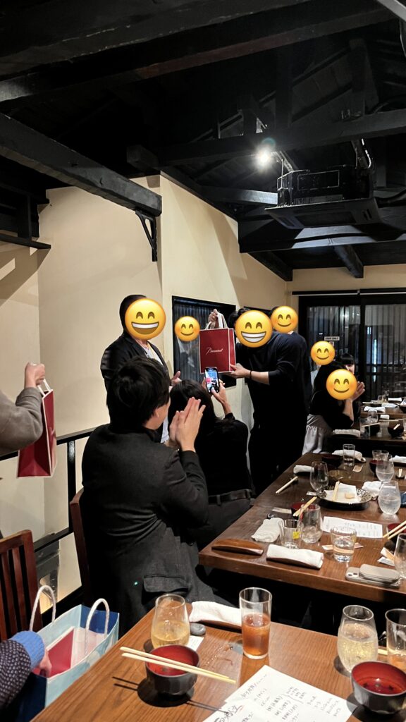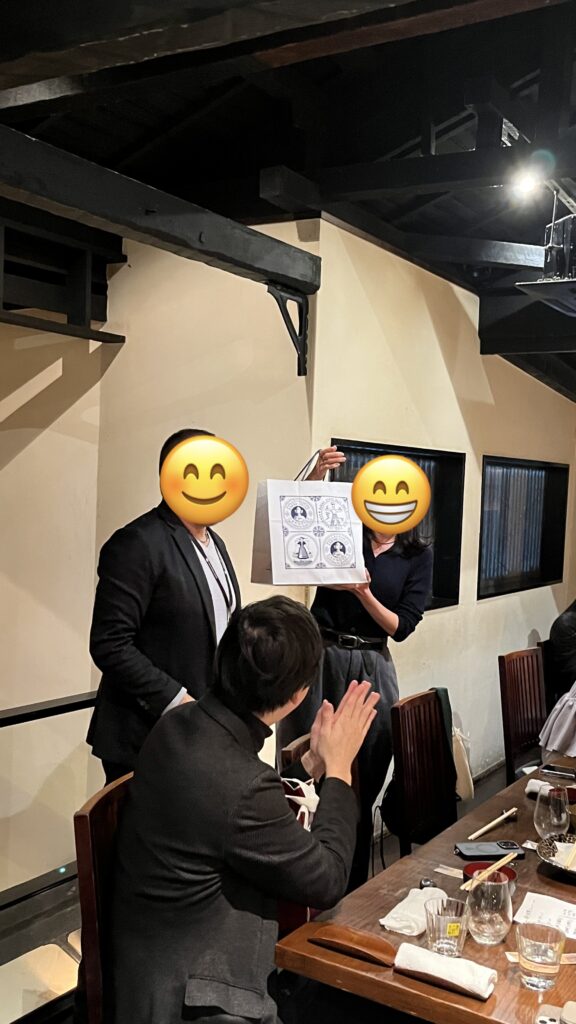 素敵なプレゼントの贈呈と、みんなからのお祝いと代表との記念撮影タイム!